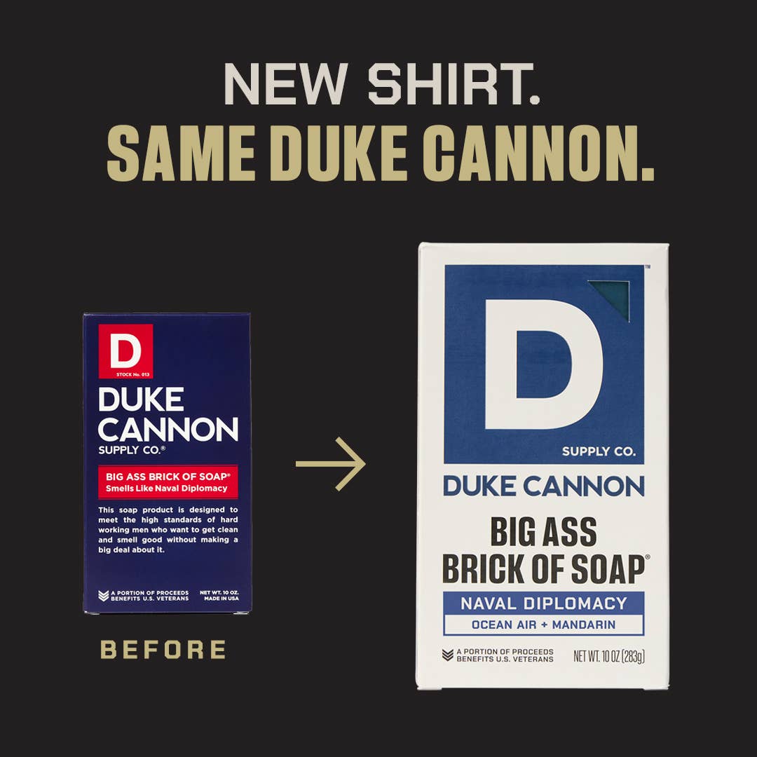 Duke Cannon’s idea of breathtaking nautical adventure does not include a 2-hour dinner cruise or an 11-minute jet ski ride. No, he strongly prefers to set forth on the high seas, with Poseidon riding shotgun through the turbulent waters. There, standing on deck, he confirms that the crisp ocean air smells better than anything land has to offer. ⦁ Product Specs Smells like ocean air + mandarin At 10 oz., it's 3x the size of common bar soaps Triple milled to last longer A portion of proceeds benefits U.S. veterans Made with natural oils
