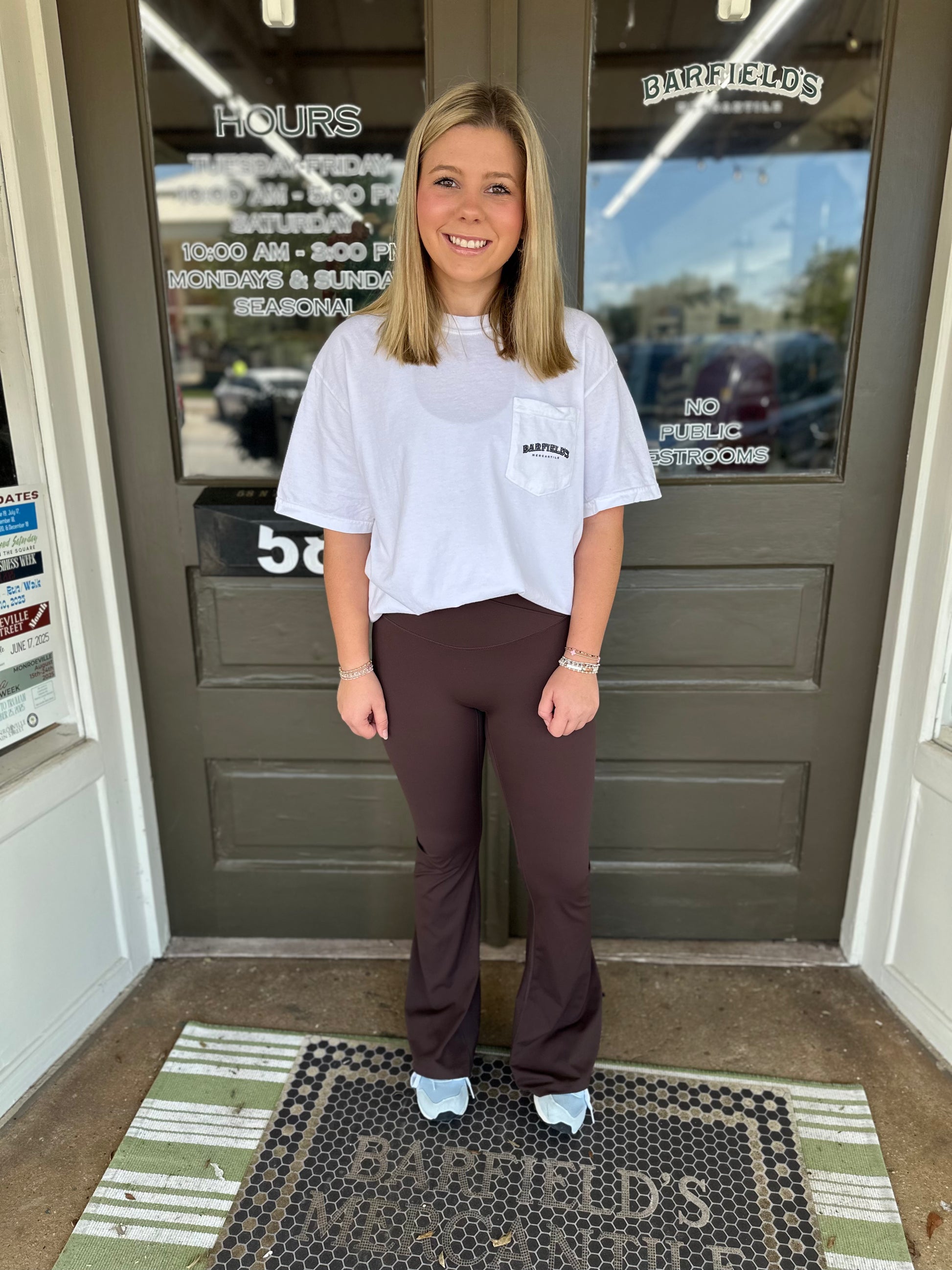 Elevate your everyday style with the Crossover Flare Legging in Chocolate, designed for the perfect mix of comfort and modern flair. Featuring a flattering crossover waistband and a sleek flare leg, these leggings move with you whether you’re running errands, lounging, or heading to yoga. The soft, stretchy fabric offers all-day comfort while the on-trend silhouette creates a lengthened, polished look. Pair with your favorite oversized sweater, graphic tee, or active top for endless styling options.